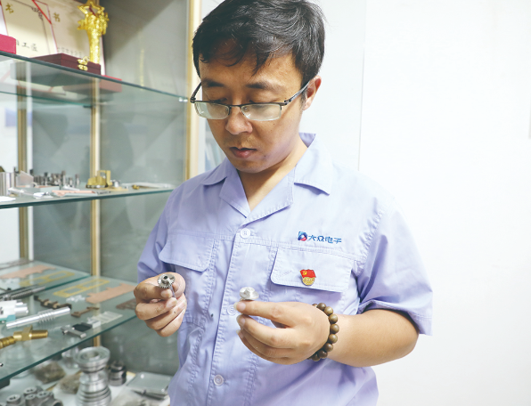 樊碧瑶2017年进入工模具分公司技术组,他时刻以学习为基础、以创新为导向、以技术为动力,经过短短几年努力,在数控编程和工艺编制等方面崭露头角,成为大众电子集团郝卫华大师工作室的主力成员,解决了不少生产过程中的“疑难杂症”。